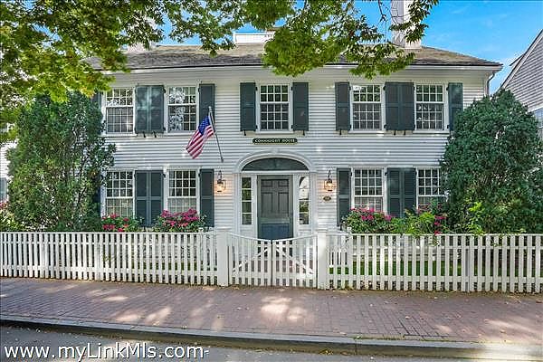 This expansive historic compound in the heart of Edgartown village offers the perfect blend of old-world charm and modern luxury. Just steps away from Edgartown’s finest restaurants and shops, this stunning property has been completely renovated by Stern McCafferty Architecture + Interiors, showcasing a harmonious balance of contemporary design and traditional architectural details. Upon entering, you'll be greeted by a sophisticated interior with open-plan living spaces designed for easy entertaining. The main level features sleek modern furnishings, flowing from the kitchen and dining area through French doors to a beautifully landscaped outdoor patio, ideal for al fresco dining and relaxation. Beyond the patio, a lush lawn and manicured gardens surround an impressive 42' x 18' swimming pool, creating a true outdoor oasis. The second level houses four spacious bedrooms, including a luxurious primary suite with an office, ensuite bath, and a private deck overlooking the pool. The third floor offers a large sleeping area with six twin beds, a full bath, a game area, and French doors leading to a sun-drenched deck. Perfect for family living or hosting guests, this home combines historic character with the finest modern conveniences. Located on North Water Street, this light-filled property is an exceptional opportunity to own a one-of-a-kind retreat in one of Edgartown’s most desirable locations.