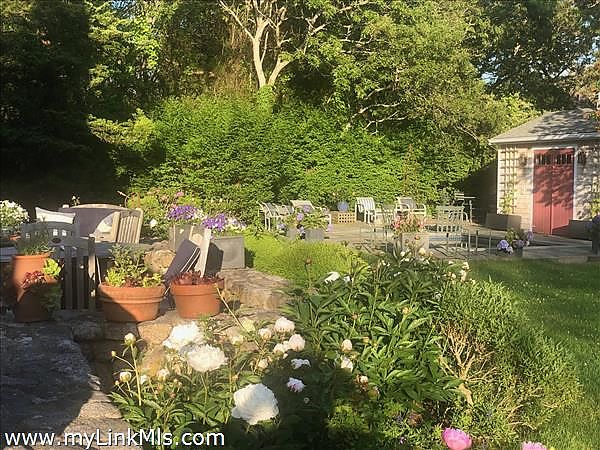 Old World Vineyard Charm Meets Modern Katama Living. Welcome to this beautifully crafted Katama family compound, a private, thoughtfully designed estate offering timeless elegance and exceptional amenities. Nestled near Edgartown Village, this stunning property includes a four-bedroom main residence with three levels of living space, a charming two-bedroom guest house, pool house, pool, spa, stone patios, lush gardens, and multiple outdoor entertaining areas. Step into the main residence through a welcoming screened-in porch with dual entries. The main foyer leads to a light-filled great room, the heart of the home, featuring custom built-ins, a fireplace flanked by French doors, and sweeping views of the stone patio, pool, and gardens. The gourmet kitchen is open to the great room and features a central island, access to a mudroom, and a half bath. The formal dining area is complete with a wall of French doors that leads to the outside. Nearby, a first-floor bedroom currently serves as a richly appointed library, with custom built-ins, a compass rose medallion, and a bay window overlooking the back gardens. The first-floor primary suite is a private retreat, accessed through its own hallway with a built-in home office. The bedroom features a bay window, and the ensuite bath includes a soaking tub. Upstairs, a cozy lounge anchors two bedrooms and a full bath. An unfinished bonus room offers potential for expansion or serves as ample storage. The partially finished lower level includes a playroom with custom built-in seating and shelves, a second home office/lounge area, and a walk-in cedar closet. Unfinished areas provide more storage. The Outdoor Living: From the great room and dining room, step onto an expansive stone patio bordered by classic Vineyard stone walls. Multiple seating areas invite entertaining or peaceful relaxation, all with views of the pool, spa, and manicured gardens. The Guest House: The two-bedroom guest house offers complete privacy, with its own driveway, garden entrance, outdoor shower, and patio. The open-concept living space features a cathedral ceiling, French doors, and an eat-in kitchen. One bedroom is on the main level, alongside a full bath and laundry, while the second bedroom is upstairs. This guest house boasts a strong rental history. This unique Vineyard compound offers timeless elegance, privacy, and a stellar location, perfect as a year-round residence, summer retreat, or investment opportunity.