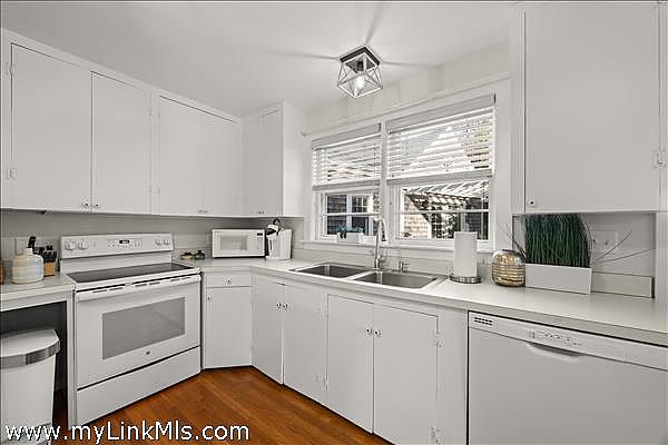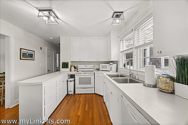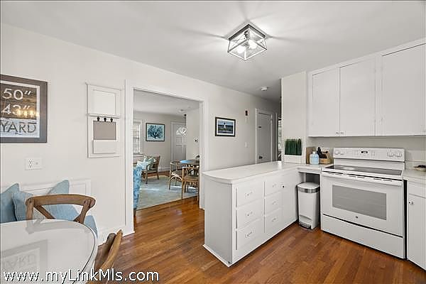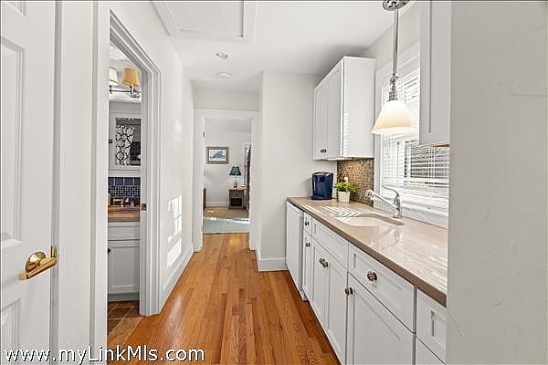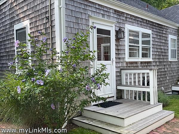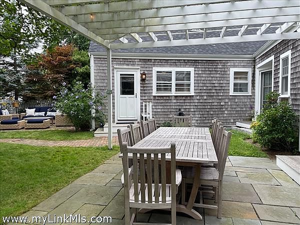 Set in the heart of Edgartown Village, this pristine Cape offers an exceptional combination of charm, comfort, and in-town convenience. Just moments from boutique shopping, acclaimed galleries, fine dining, and the scenic harbor, this four-bedroom, three-bath home captures the quintessential Vineyard lifestyle. Two entrances enhance the home’s functionality: a formal front entry leads directly to the inviting living room, while a casual back entrance opens to the bright, cheerful kitchen, complete with a built-in banquette dining area. The outstanding primary wing at the rear of the house features a separate entrance with French doors opening to a pergola patio. The suite boasts a cathedral-ceiling bedroom, a private sitting area, a full bath, and a kitchenette—perfect for extended guests or private retreats. The first floor also includes an additional full bath, a second bedroom, and a convenient laundry room. Upstairs offers a spacious primary bedroom, an additional bedroom, and a full bath.