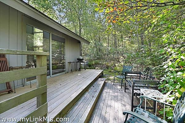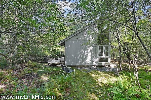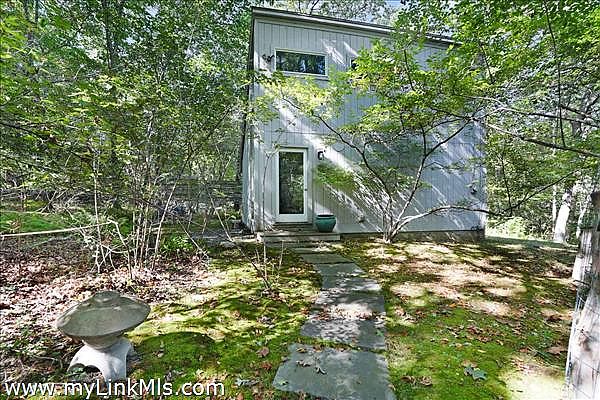 Perched atop Fulling Mill Hill this distinctive contemporary main house plus guest house offers mid-century charm and a serene retreat set on 3.3 acres of mature oak and beech forest and bordered by an ancient stone wall. Designed by renowned Yale School of Architecture Dean Paul Mitarachi, the main house features a striking circular entryway framed by mature Asiatic gardens. Step inside to discover a custom circular staircase with dramatic floor to ceiling windows, leading to the upper living area flooded with natural light from the wall of south-facing windows. The living area with high ceilings and woodstove is a comfortable place to congregate, while the kitchen and open dining areas lend themselves to modern day living. Glass sliding doors open onto a spacious 2nd story deck giving the entire living space an intimate relationship with the outdoors. On the first floor there are three total bedrooms; two bedrooms sharing a full bath plus a primary bedroom with a full bath en-suite.