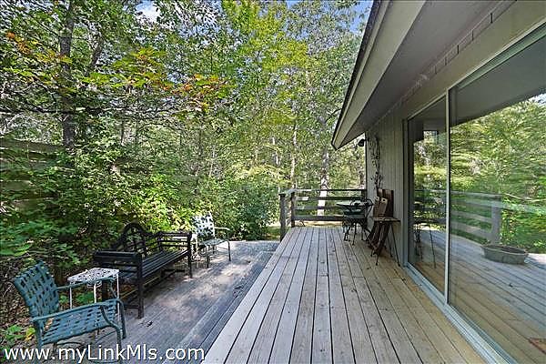 Spacious yard with mature plantings and lily gardens
