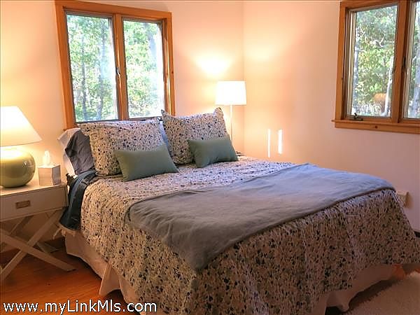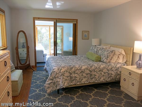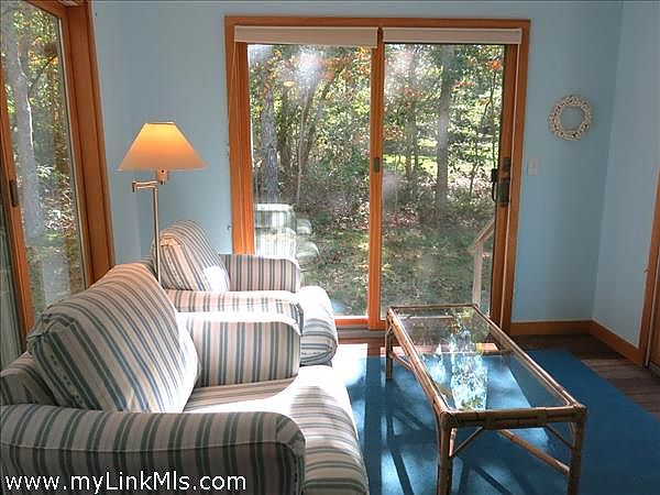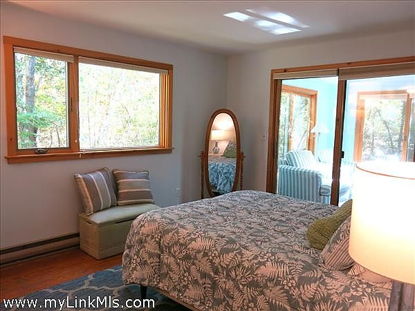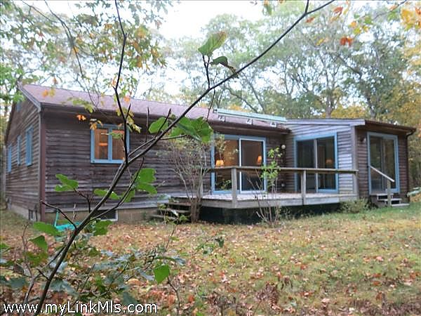 One level living! This ranch-style home has a great layout and some sweet, unexpected features. The living spaces are opened up to each other allowing the wall of sliders in the living room to flood the rooms with light - and these sliders give access out to the deck with serene views of the woodlands beyond; where Stoney Hill Path bounds the entire south side of the property. The primary suite is at one end of the home and has been expanded by the addition of a 3-season sunroom that also offers access out to the deck. At the far end of the house are the two guest bedrooms and their shared bath. The living room and all of the bedrooms have hardwood floors, the home is offered nicely furnished - and the full basement offers opportunities for additional living spaces. Great location just a hop, skip and jump to North Tisbury amenities or down-town Vineyard Haven.
