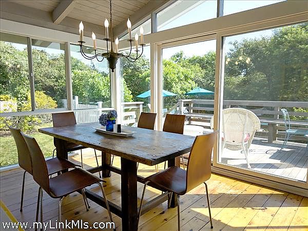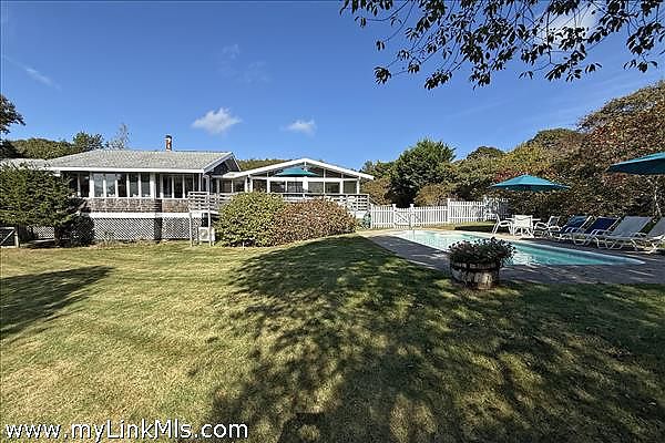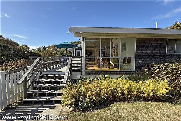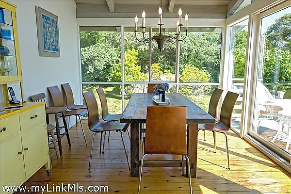 Step into timeless mid-century modern style and comfort in this single-level, 4-bedroom, 3-bathroom home located in the heart of Chilmark. This home features an open layout with large glass panel doors that lead to a sun-drenched deck, heated in-ground pool, and grassy lawn. This home is offered completely furnished with a well-equipped kitchen, large living room with wood burning fireplace, dining area overlooking the pool and yard, air conditioning, and cable television and internet and a distant peek at the ocean. The home sleeps 8 comfortably, with two ensuite bedrooms (king and queen), an additional queen room, and a twin room perfect for guests or little ones. Outdoors you will find an inground, 4-foot-deep heated pool including pool side furniture, umbrellas, hammock, outdoor shower, and a gas barbecue. Step across the road to the Land Bank’s Fulling Mill Preserve and theOcean View Farm Preserve with stunning Atlantic views and 20+ acres of walking trails. As a Chilmark resident you will enjoy the beautiful beaches of Lucy Vincent and Squibnocket. This property has a strong rental history with rates ranging to $13,000 weekly. Easy to show, please call listing broker.
