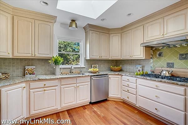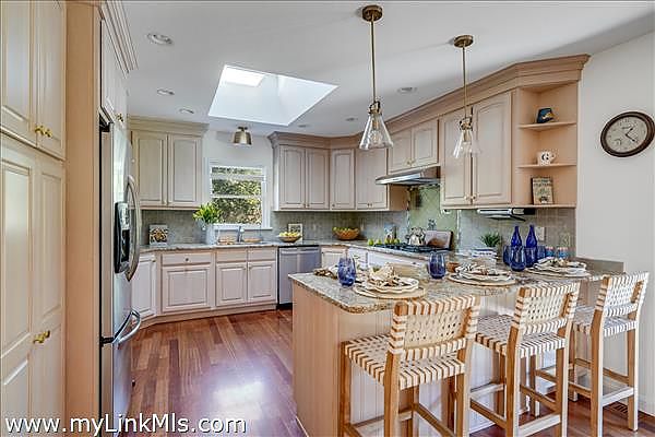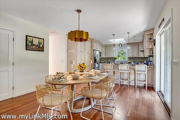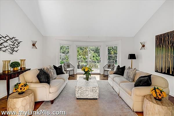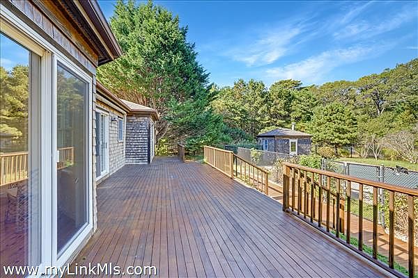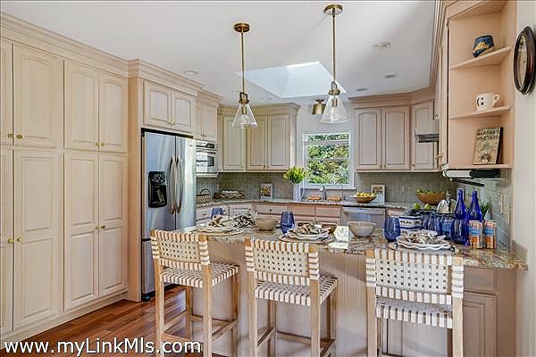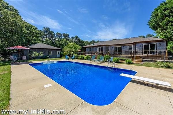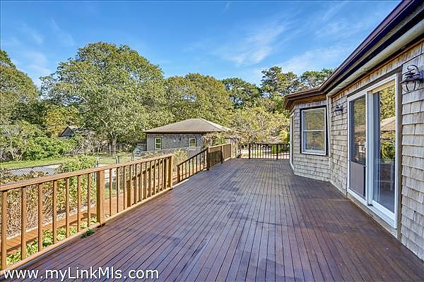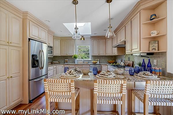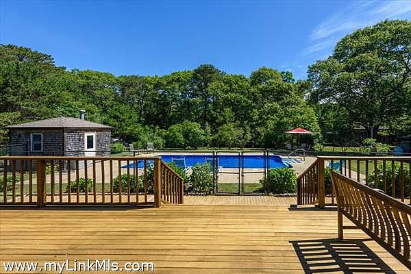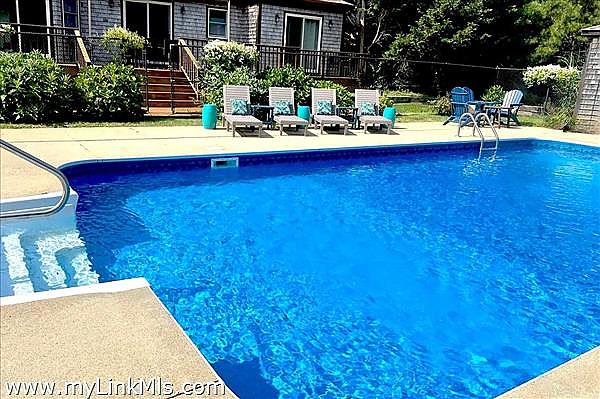 Your private oasis with a POOL awaits in this beautifully updated Lagoon Hills retreat on over 1.5 acres. Enjoy a carefree, single-level lifestyle featuring an open-concept kitchen and dining area, spacious living room, office and exercise room — all thoughtfully designed for comfort and flow. Step outside to a stunning backyard anchored by a sparkling pool, surrounded by decks, patios, and lush landscaping with stone walls, specimen trees, and a goldfish pond with a waterfall. Additional amenities include a pool house, a detached one-car garage/workshop, an oversized two-car garage, and a full basement—perfect for extra storage or hobbies. With private access to Lagoon Pond, this park-like property offers the ultimate blend of indoor-outdoor living and tranquility. A rare Vineyard gem designed for entertaining, relaxation, and easy island living.