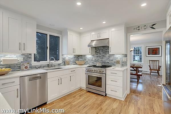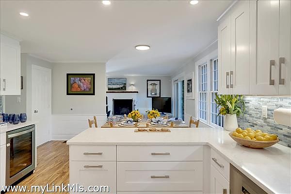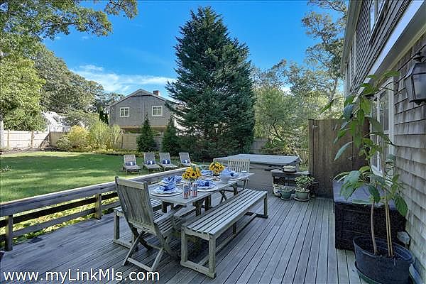 Enjoy beach-close living—just 0.2 miles to the shore—in sought-after West Chop. This welcoming 5BR/3.5BA colonial blends classic Vineyard character with modern comforts, including central air, an updated kitchen, and three fireplaces. Approximately 3,152± sq ft (expanded from 2,632± with a 520± sq ft finished space over the garage) offers flexible, easy flow to a large fenced backyard with a deck, outdoor shower, and a new saltwater hot tub for effortless relaxation. The dry, unfinished basement with bulkhead walkout presents excellent finish potential for a gym, media room, or workshop (buyer to verify). From your front door, bike or stroll to town, beaches, shops, and the ferry. Ideal as a year-round residence, second-home retreat, or investment/rental opportunity.