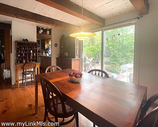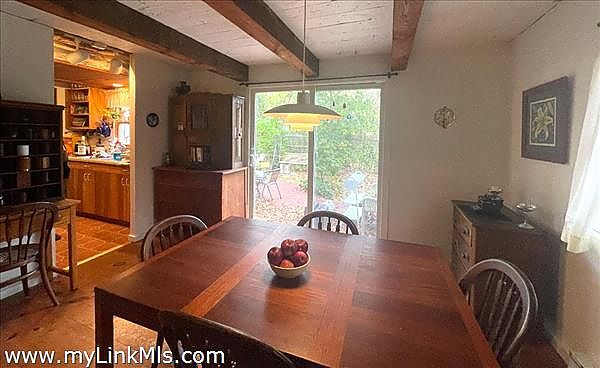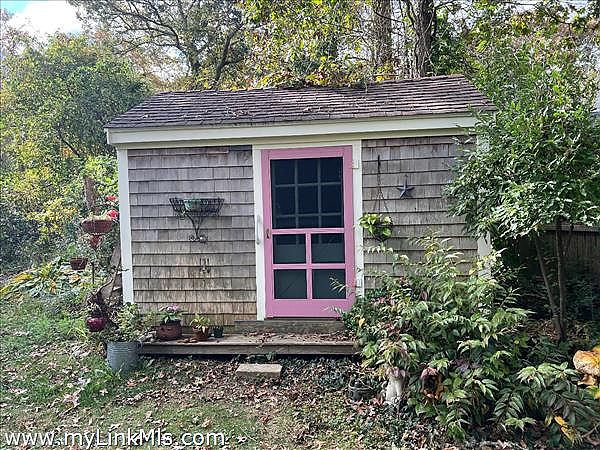 Move-in ready 3-bedroom, 1.5-bathroom house with a warm and welcoming interior. The main level includes an efficient kitchen, living room, dining room with sliders to the mahogany deck and outdoor shower, 1 bedroom, laundry, and convenient half-bath. A one car garage is attached to the main level. The 2 large bedrooms and a full bath are located upstairs. Enjoy the private backyard with its well established perennial gardens, complete with a "she shed"—perfect for relaxing or entertaining. Great location on a paved road with easy access to kayaking, the bike path, Felix Neck, and Town. Owner occupied- 24 hrs notice to show please.
