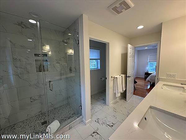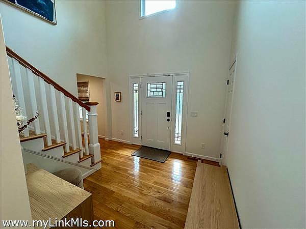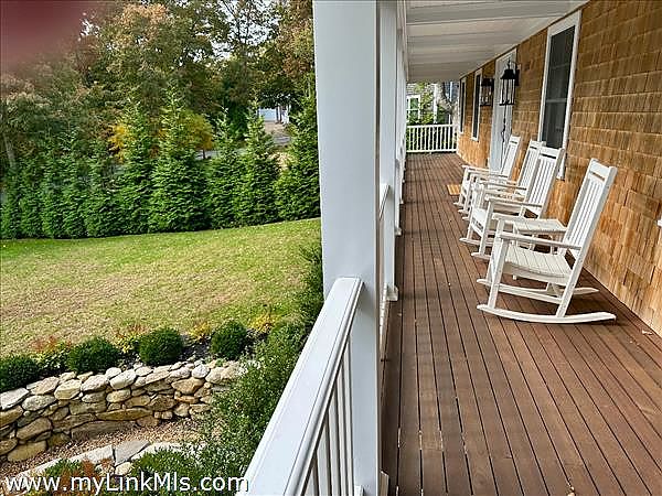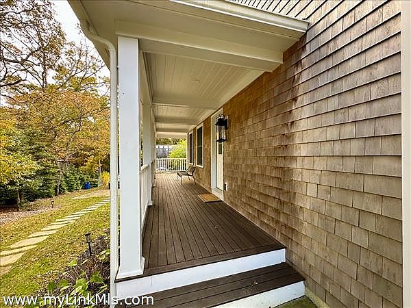 This Colonial Style home with wrap around porch is beautifully maintained and nicely sited on almost a half acre. The first floor is thoughtfully designed and offers an open floor plan that includes an ample mudroom with half bath and is just off the side porch that takes you into the well equipped kitchen with a center island, stainless appliances, custom cabinetry and dining room with sliders to a peaceful and private deck. Living room offers a comfortable space for TV and relaxing. There is also nice size first floor primary with walk-in closet and spacious en-suite bathroom. The grand entryway takes you to the second floor which offers a second primary bedroom with walk-in closet and en-suite bath. There are two guest rooms that share a bath and second floor laundry. Wood and tile floors throughout, propane FHA with A/C. The walkout basement features 10'ceiling height and is ready to be finished off for additional living space, workshop or office.