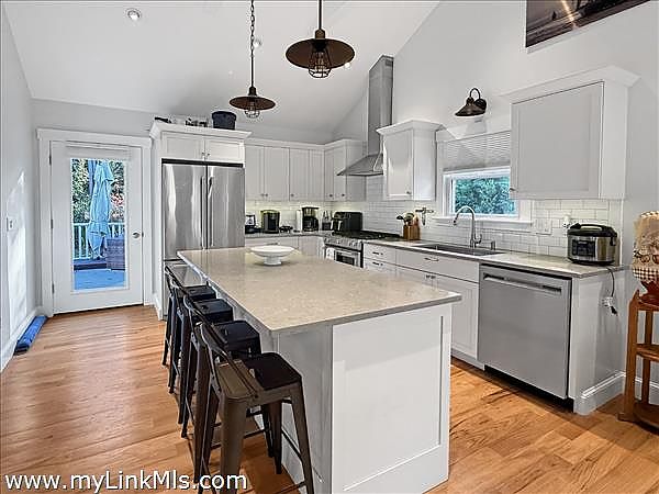 Thoughtful details and high-end finishes shine throughout this four-bedroom, two-bath Vineyard Haven residence. Its versatile layout offers both flexibility and functionality, appealing to buyers seeking a comfortable single-family home or the potential to create a separate accessory dwelling unit. No expense was spared on the beautifully landscaped yard, which features a fire pit, a large storage shed, and raised garden beds. Elegant hardscaping elevates the exterior and provides multiple inviting outdoor living spaces. Located in a quiet neighborhood, the property offers privacy while remaining close to Tashmoo, the boat landing, and downtown Tisbury's shops and restaurants. A home to take pride in.
