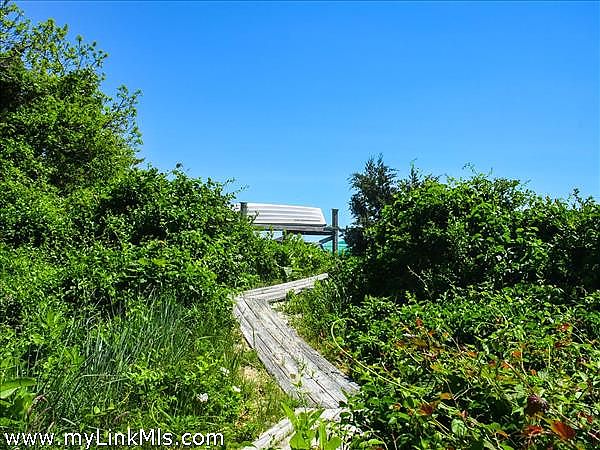 Outside, the landscape opens gently toward the water. A private beach path sits immediately adjacent to the Vineyard Haven Yacht Club, offering sailing, tennis, dock access, and a café just steps away, an uncommon amenity pairing in such a peaceful, natural setting.