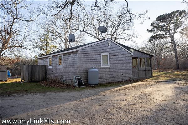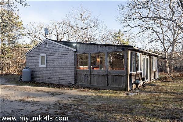 Set on a serene 3.02-acre parcel in Chilmark, 45 Quenames Road offers privacy, charm, and excellent potential. In a sunny clearing among mature trees, the maintained 2-bedroom house features first-floor living, an open kitchen and living area, two spacious bedrooms, a full bath with shower, an enormous three-season screened porch, a large outdoor shower, kitchen gardens, and a potting area with utility sink. Well system updated in 2011. With strong rental income, currently generating $2,500 month to month year-round, and expansion potential, this outstanding value is located close to South Road, West Tisbury's village center, and Chilmark's iconic town beaches Squibnocket and Lucy Vincent. Town records indicate a 4 bedroom septic, passed Title V Inspection in December 2025. #45 is shown as Lot 1-B on a new subdivision not yet reflected on the assessments and public records - approved survey is attached. 47 Quenames Lot 1-C is also available.