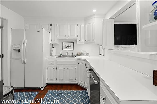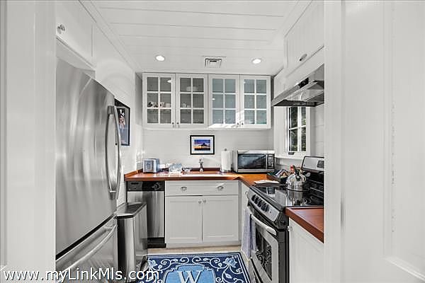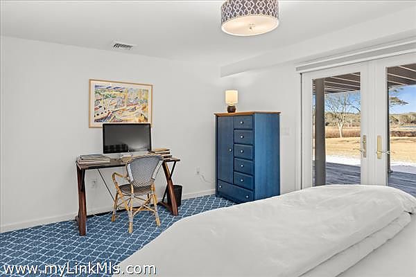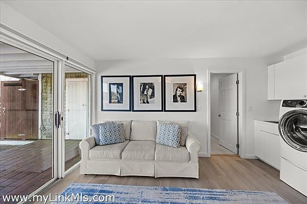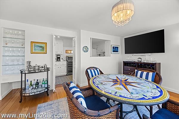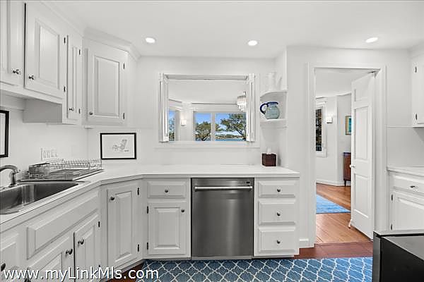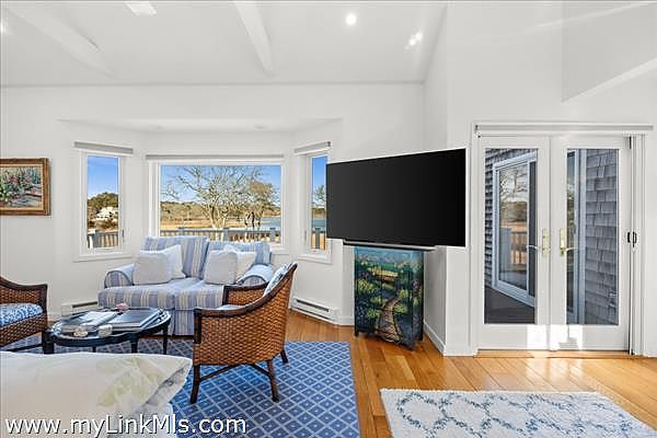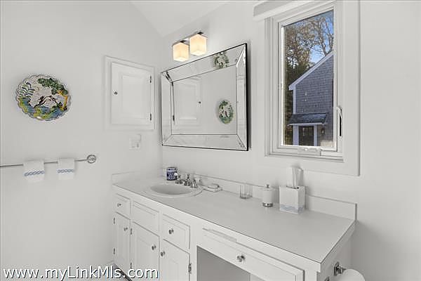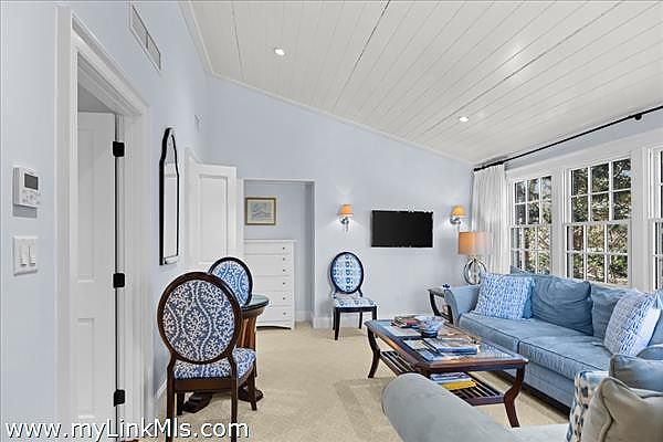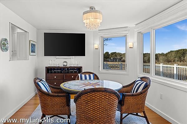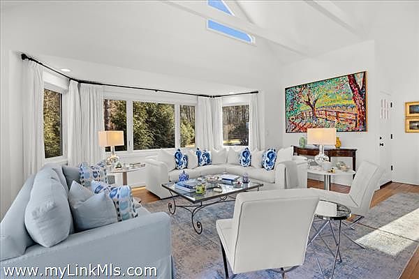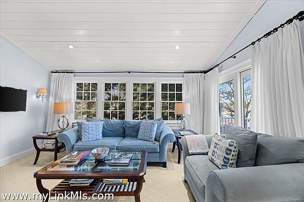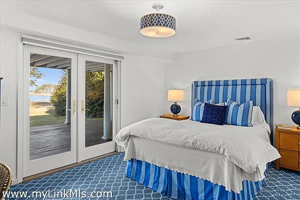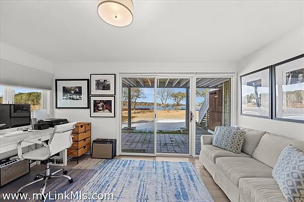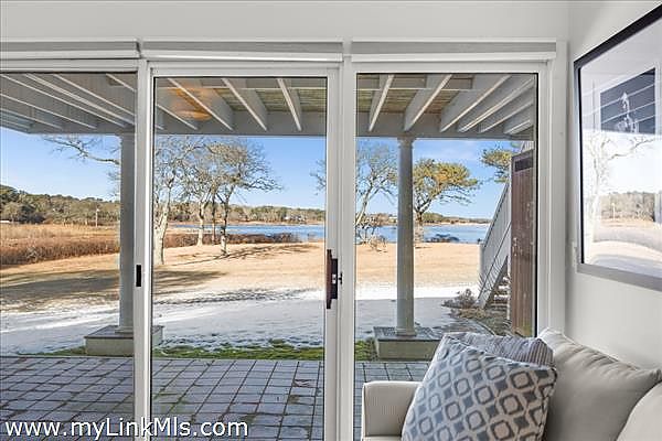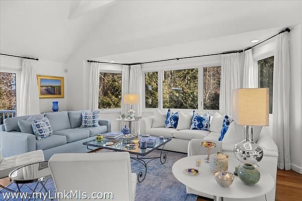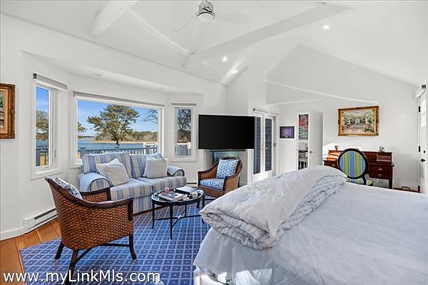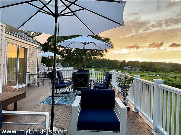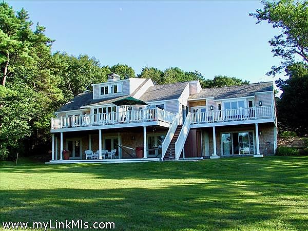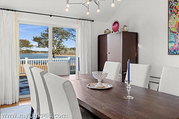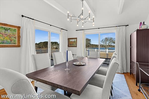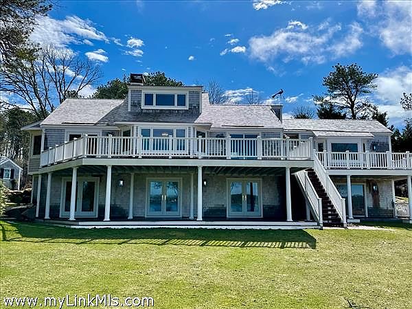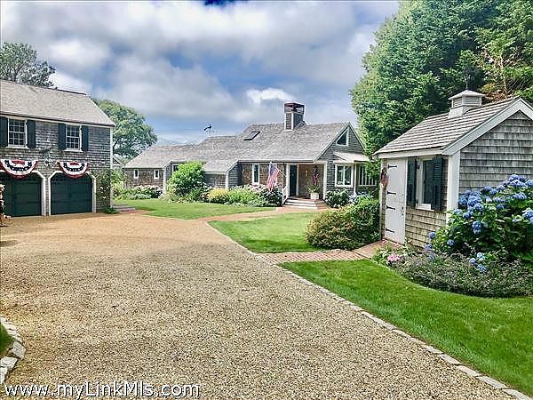 First time on the market in 26 years, this beautiful waterfront family compound sits at the end of Majors Cove Lane in a private and peaceful setting with sweeping and expansive water views and a private 50’ boat dock shared with only one neighboring property. The property directly fronts Sengekontacket Pond, on a 1.5-acre natural park-like setting, abutting Felix Neck Wildlife Sanctuary, a 350-acre nature preserve, which can never be developed. The 2,900 sq ft main house is comprised of 4 bedrooms, 3 full baths, a living room with vaulted ceilings, kitchen, dining room and a comfortable loft space which can be used as a den, office or playroom. All rooms open to the upper and lower mahogany decks through multiple glass French doors. The 600 sq ft Patrick Ahearn designed guest house over the 2 car-garage features a light-filled living room with a vaulted ceiling, bedroom, full bath and kitchen, with sliding doors to a mahogany deck with exterior stairs and water views. Lush gardens and beautiful landscaping surround the property. An Architectural shed with electricity, antique copper lanterns, weathervanes and an outdoor shower further enhance this charming home. Majors Cove property owners also enjoy access to the Association’s brand new private tennis/pickleball courts. This one-of-a-kind Edgartown property is for the discerning buyer seeking an all-encompassing Vineyard experience.