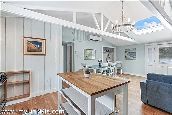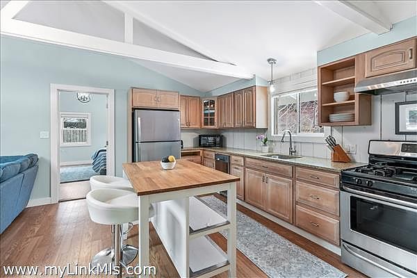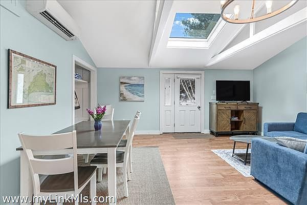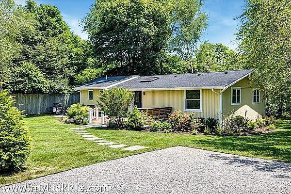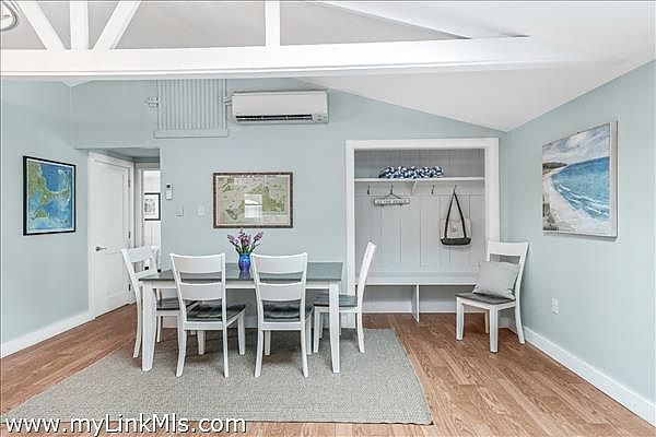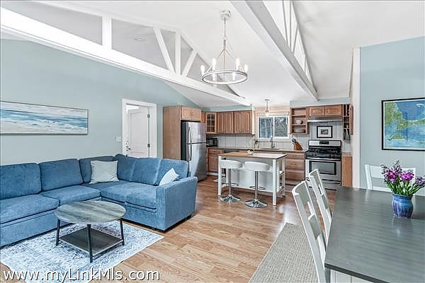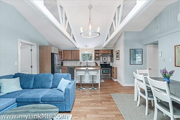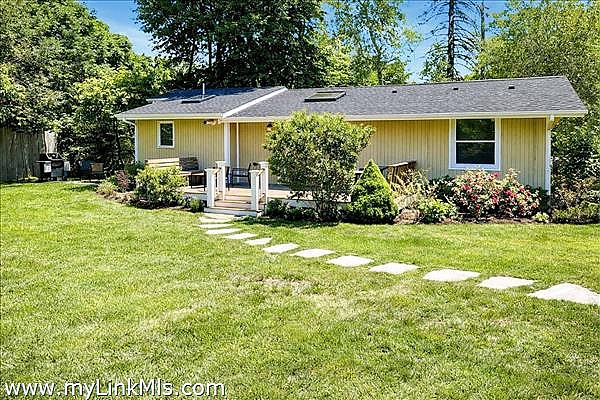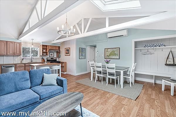 Recently updated Oak Bluffs ranch-style home ideally located near Downtown and Oak Bluffs Harbor. Step inside to discover vaulted ceilings and an airy open floor plan that seamlessly connects the living room, dining area, and a spacious kitchen featuring granite countertops and updated appliances. The private primary suite is thoughtfully positioned off the main living area and offers a full bath with in-suite laundry, plus its own separate exterior entrance, perfect for added privacy or guest flexibility. Two additional guest bedrooms and a full hall bath complete the interior layout. Outdoor living is equally inviting, with a charming front deck featuring built-in bench seating, a stone patio for entertaining, and a convenient storage shed. Recent upgrades include a new roof, updated flooring, and energy-efficient mini-split systems for heating and cooling. Move-in ready and perfectly suited for enjoying the Vineyard lifestyle.
