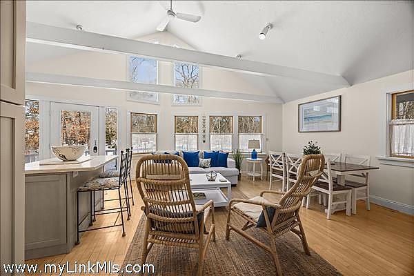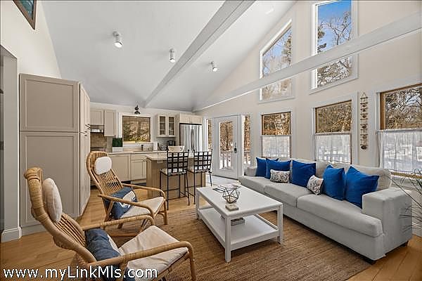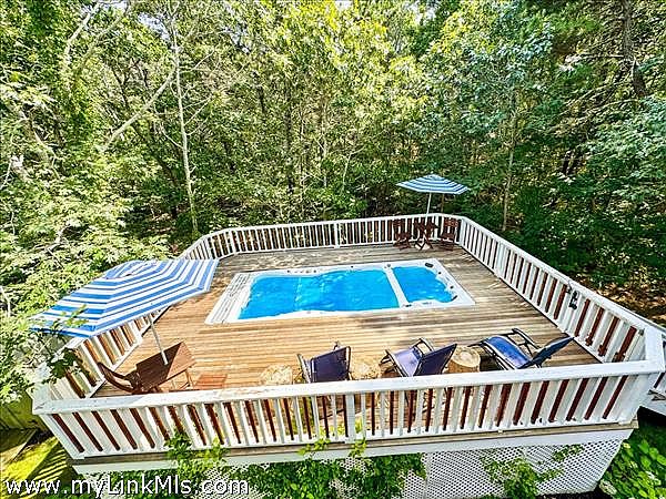 Turnkey Katama Retreat – Welcome to this beautifully appointed, fully furnished home, offering the perfect blend of relaxed coastal living and effortless ownership. With a strong rental history and thoughtful upgrades throughout, this property is an exceptional opportunity as a year-round residence, vacation escape, or income-producing investment. At the heart of the outdoor experience is a 19-foot heated swim spa with current and attached Jacuzzi, set into a stunning wood deck. The surrounding outdoor spaces are equally inviting, featuring an outdoor shower, a bluestone fire pit patio, dining area, multiple decks, and wooded privacy that creates a peaceful atmosphere. Inside, the kitchen and dining area with cathedral ceilings provide an airy and welcoming gathering space with an abundance of natural light. Stainless steel appliances, granite countertops, and modern finishes complement refreshed interiors and new maple floors upstairs. Recent improvements include a new roof, renovated bath, updated landscaping, and numerous interior enhancements—ensuring true turnkey convenience. The thoughtfully designed layout includes a primary bedroom with a private balcony and two first-floor bedrooms with a shared full bath for convenient accessibility. Town sewer connection allows for expansion up to six bedrooms, offering added long-term value. Ideally located, a short distance to South Beach, Edgartown Village and Morning Glory Farm, this property captures the very best of Katama living. Move-in ready and ready to enjoy from day one—this is a rare opportunity to own a truly turnkey home in one of Martha’s Vineyard’s most sought-after locations.