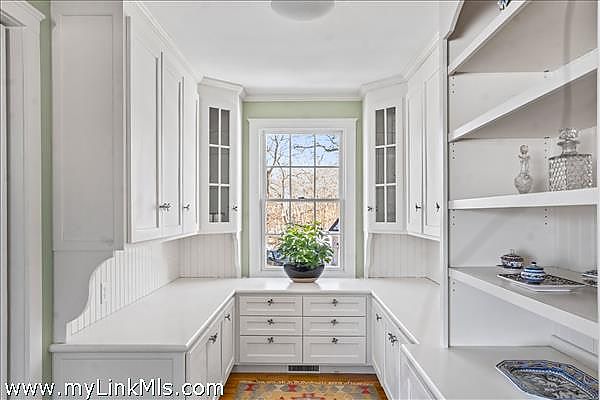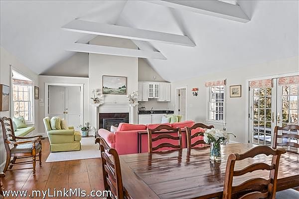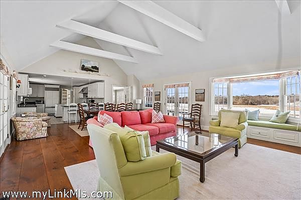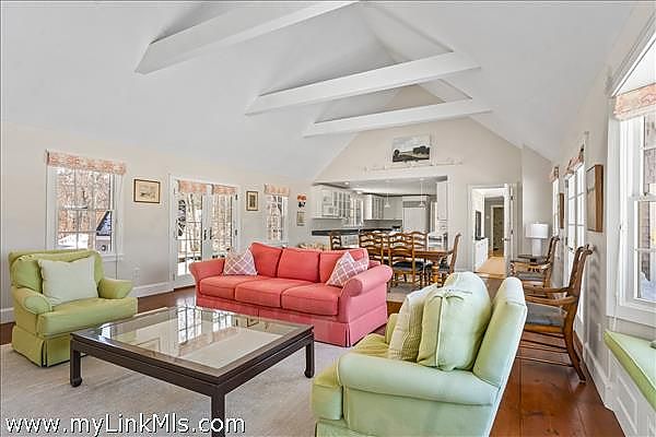 Sweetened Water Farm ~ Just off the main road, past an idyllic horse barn and conserved association land, you’ll find this eight-bedroom residence that sits prominently on 2.4 acres. The sprawling main house, an expanded classic Cape featuring separate living areas, both inside and out, and six bedrooms, including two first-floor en-suites, overlooks the rolling pastures with grazing horses. Private guest quarters above the detached oversized garage offer additional comfortable accommodations. Sweetened Water Farm combines the tranquility of an up-island location with the convenience of being just moments from the boutiques, restaurants, and harbor of downtown Edgartown. A home for all generations in a setting like no other.