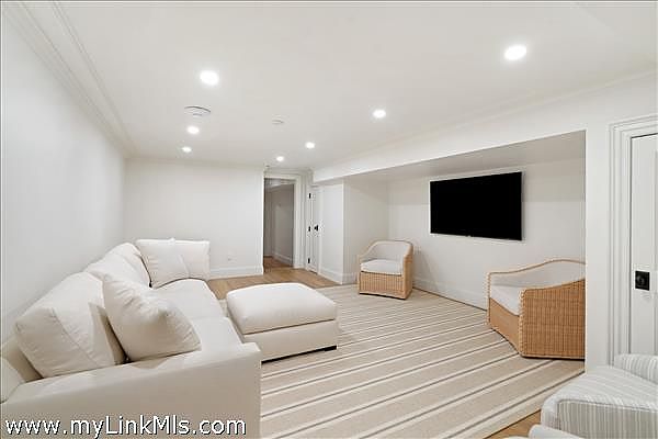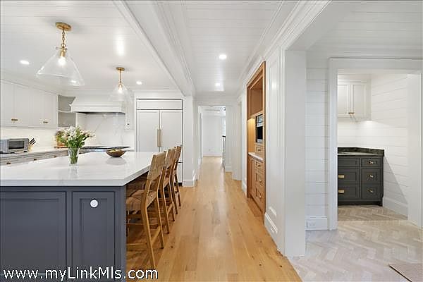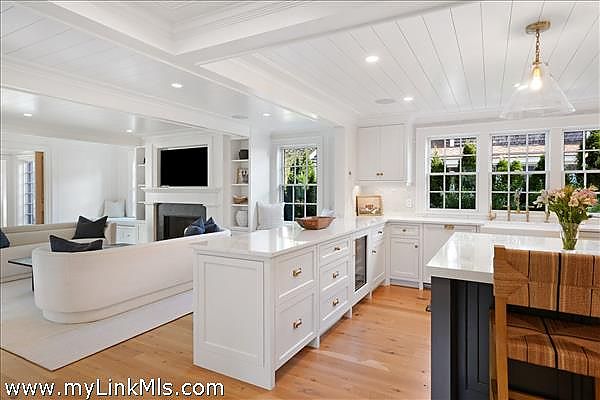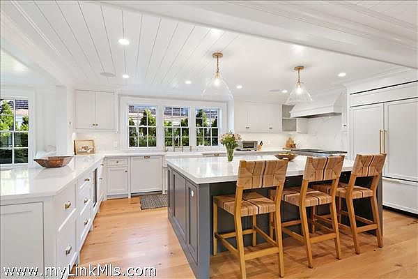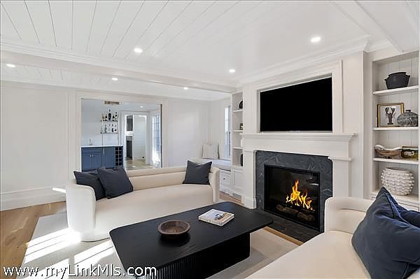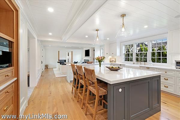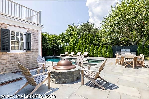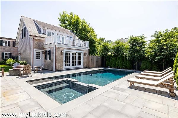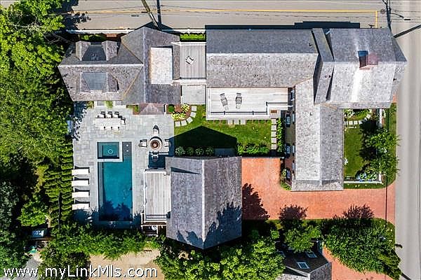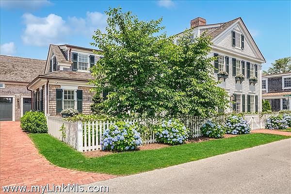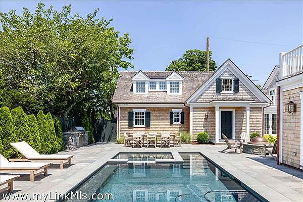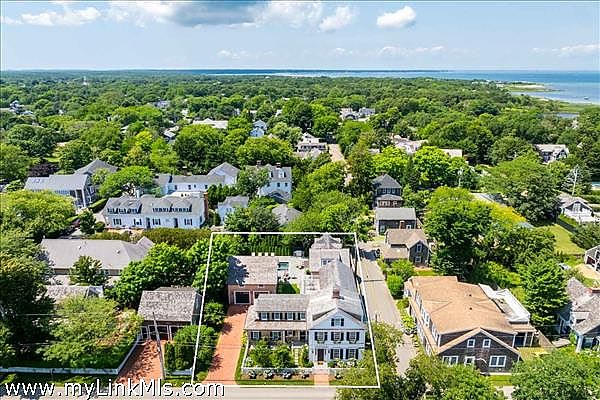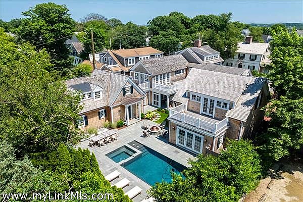 A rare legacy offering in the heart of Edgartown Village, this extraordinary in-town compound is among the largest of its kind on Martha’s Vineyard. Originally built in 1835 and masterfully renovated by renowned architect Patrick Ahearn, the estate seamlessly blends historic character with refined modern luxury. Just moments from Edgartown Harbor and the island’s premier dining and shopping, the property spans two lots and features an exceptional compound with 10 bedrooms and 14 baths. Designed for both elegant entertaining and comfortable everyday living, the main residence showcases refined architectural details and modern technology throughout. Beautiful oak floors run across the home, complemented by sophisticated hardware, premium appliances, and walls finished in classic nickel board. A gracious living room with fireplace opens to a patio with retractable screens, creating effortless indoor-outdoor flow. The chef’s kitchen is impeccably appointed with dual dishwashers, a plumbed Miele coffee bar, refrigerator drawers, and a wine refrigerator. A custom brass and glass bar, complete with an ice maker and refrigerated drawers, can easily convert into a secondary kitchen. Two private bedrooms with en-suite tile baths anchor opposite wings of the main level, offering privacy and balance. The main floor also includes a secondary living room with a gas fireplace, an elegant dining room wrapped in seagrass wallpaper, a generous walk-in pantry, and a spacious mudroom. Upstairs, a spectacular primary suite serves as a retreat with a private balcony and two spa-inspired full baths. Three additional en-suite guest rooms and a spacious laundry room complete the second floor. The third level features a charming nautical-themed bunk room with four built-in beds and a full bath. The finished lower level includes two bedrooms with en-suite baths, a media room, wine cellar, and additional laundry. Beyond the main house is a beautifully finished two-car garage with brick floors and wood-paneled walls. The carriage house above offers a private guest suite with a balcony overlooking the pool. Lush hydrangeas surround a resort-style pool and spa, complemented by a built-in grill, firepit, and a fully equipped cabana with kitchenette, half bath, laundry, and climate control. This Edgartown estate offers rare privacy, scale, and sophistication just steps from Main Street. An iconic Martha’s Vineyard property reimagined for modern coastal living.