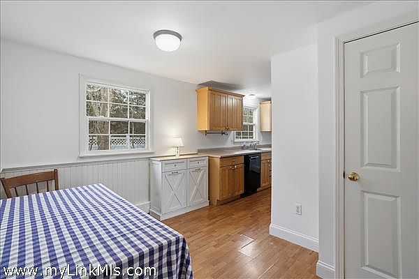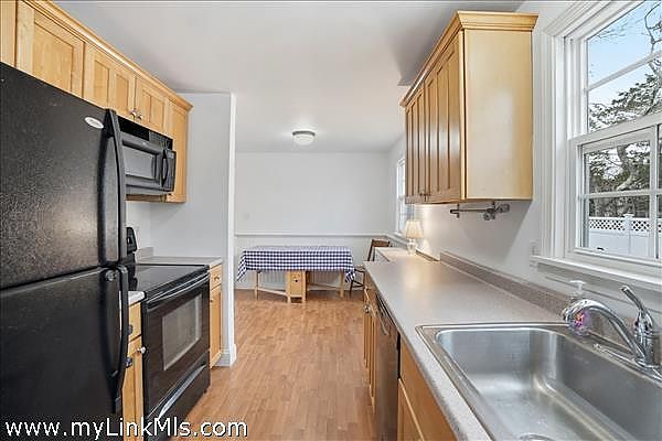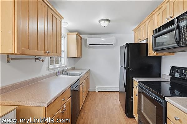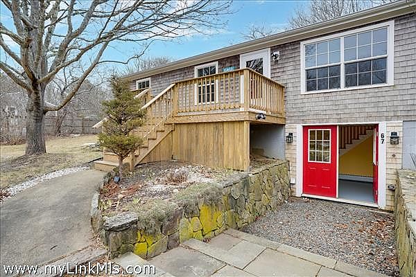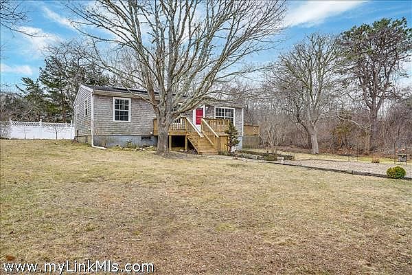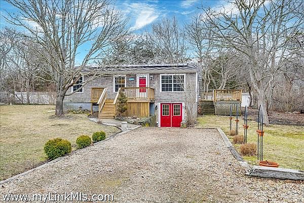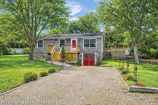 Turnkey ranch in a central island location with access to all towns and beaches. The main level features a sunny living area, kitchen, full bath, and three bedrooms, plus a front deck and a side deck perfect for outdoor dining, grilling, and laid-back summer evenings. The lower level offers an additional 960 sq ft with interior and exterior access, a full bath, two spacious rooms, laundry, and plenty of storage. Enjoy year-round comfort with oil heat and mini splits for heating and A/C. The property includes a generous yard with flowering bushes, fruit trees, a peaceful pond, and garden boxes ready for planting. Ample off-street parking makes hosting easy. This home is being sold as-is, you can add your personal touches. Leased solar panels help offset electric costs, often generating excess power back to the grid.