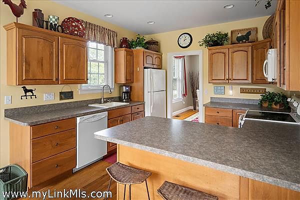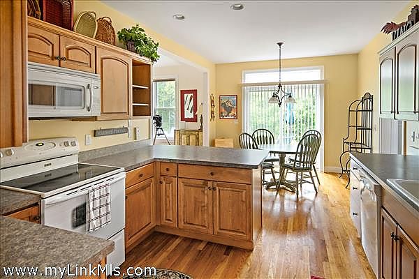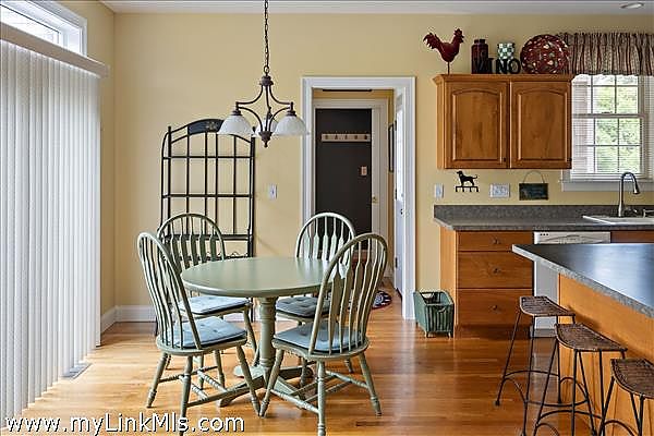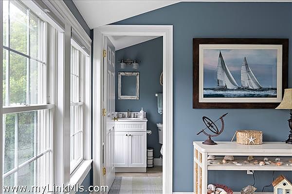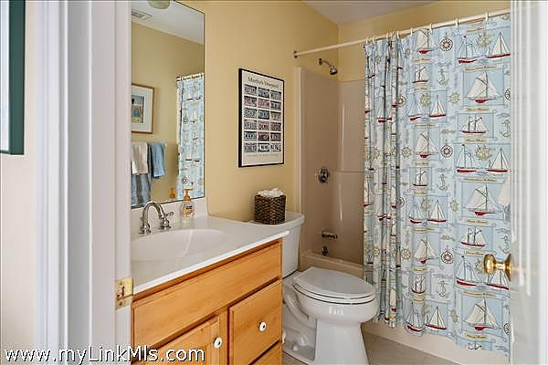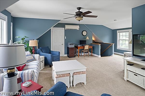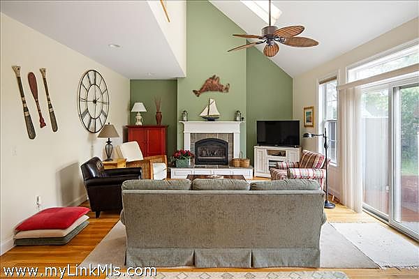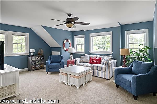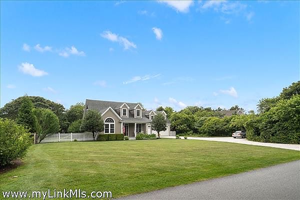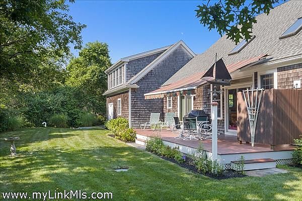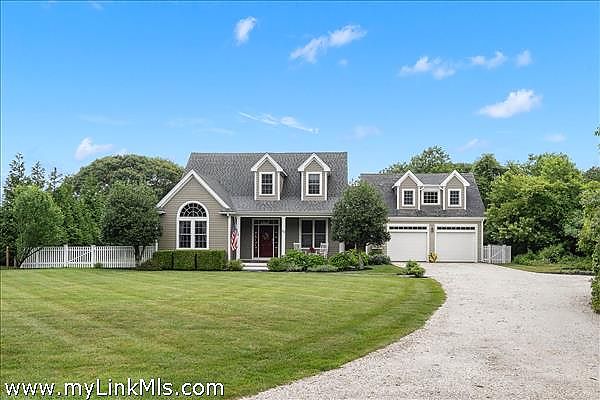 Inside, the home is bright and comfortable, with a vaulted living room and gas fireplace that makes it just as cozy in the shoulder seasons. The open kitchen and dining area flow right out to a large back deck—ideal for grilling, relaxing, and long summer evenings of entertaining. And of course, there’s an outdoor shower for rinsing off after the beach. The first-floor primary suite offers a private, laid-back retreat with cathedral ceilings, a walk-in closet, and its own bath. Upstairs, two spacious bedrooms share a full bath, giving everyone room to spread out. Over the garage, you’ll find a great bonus space with a half bath—perfect for guests, a home office, or a hangout spot. With a mudroom/laundry area, oversized two-car garage, full unfinished basement awaiting your vision, and a flexible layout, the home works just as well for year-round living as it does for summer getaways. Being offered fully furnished, it’s ready for you to move right in and start making Vineyard memories.