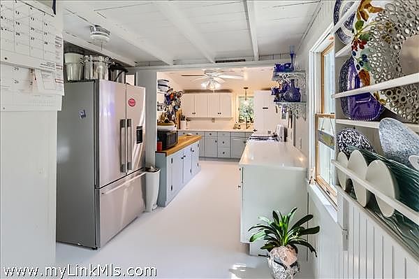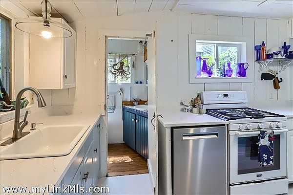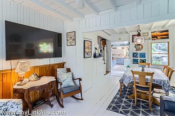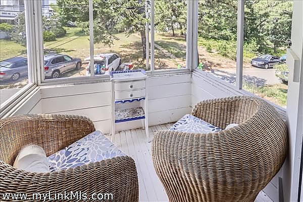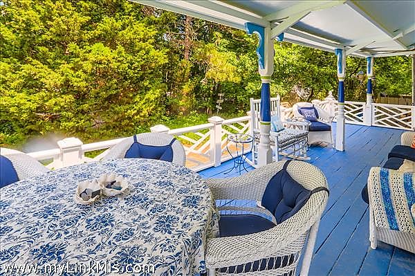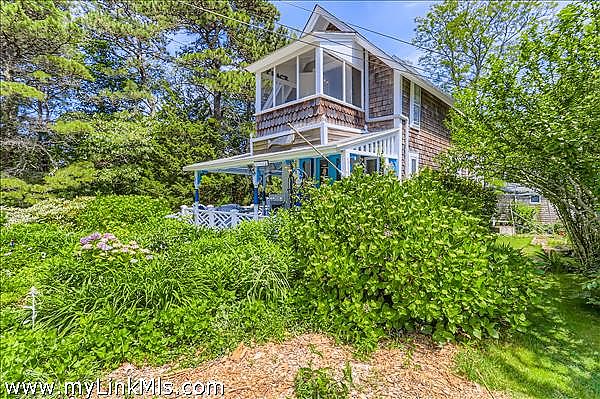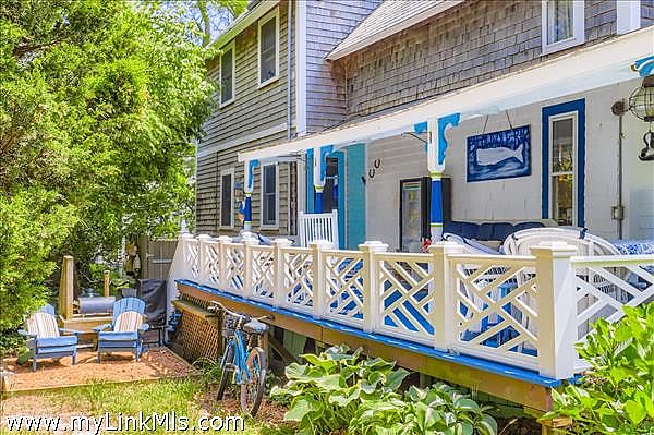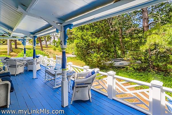 Welcome to this year-round East Chop Victorian Gingerbread home, close to Oak Bluffs Harbor, Jetty Beach, and downtown. The amazing wrap-around porch is perfectly designed for spending lazy summers with friends and family. Many a party has been hosted on this generous porch, made more enticing by an open-plan first floor with a large kitchen, living room, and dining area. The first floor features Victorian charm, featuring a beautiful stained glass window, painted beam ceilings, wainscoting, and built-in shelves. The second floor has 3 bedrooms, each with its own character, including a generous primary bedroom suite with vaulted ceilings, skylights, a walk-in closet, plus a full bathroom and an extra built-in closet. The 2nd bedroom has an open and airy feel with a vaulted ceiling and a screened porch affording views of the neighborhood. The final room has its own private balcony for viewing the backyard garden oasis. The lower level consists of a finished bonus room, laundry, and a full bathroom with tub and storage area. This home and its established gardens have been lovingly maintained, and its location in a delightful neighborhood of highly sought-after East Chop, gives you all that Martha's Vineyard living can offer. Passed Title V Inspection.