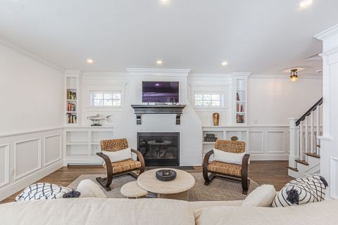 Primary Bedroom: 1st Level, King, bath, glass wal- in shower, dual vanities