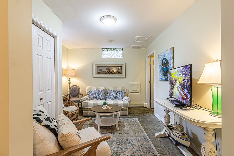 Spacious and perfect for extended families, featuring multiple attractively furnished living areas, and sleeps 13 comfortably. The lower level of the house features a queen bed, kitchenette, den area with TV, and full bath.
