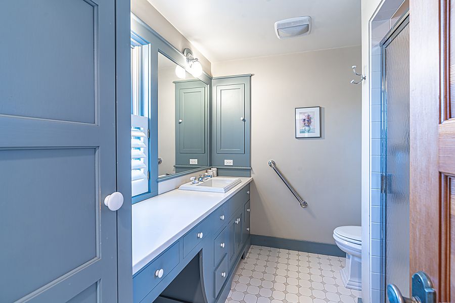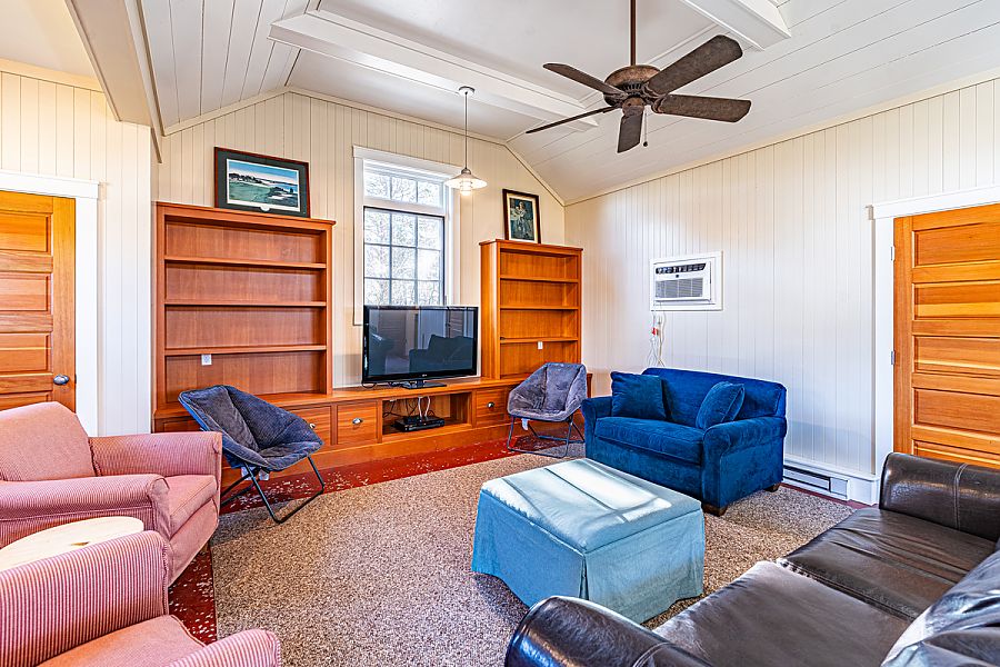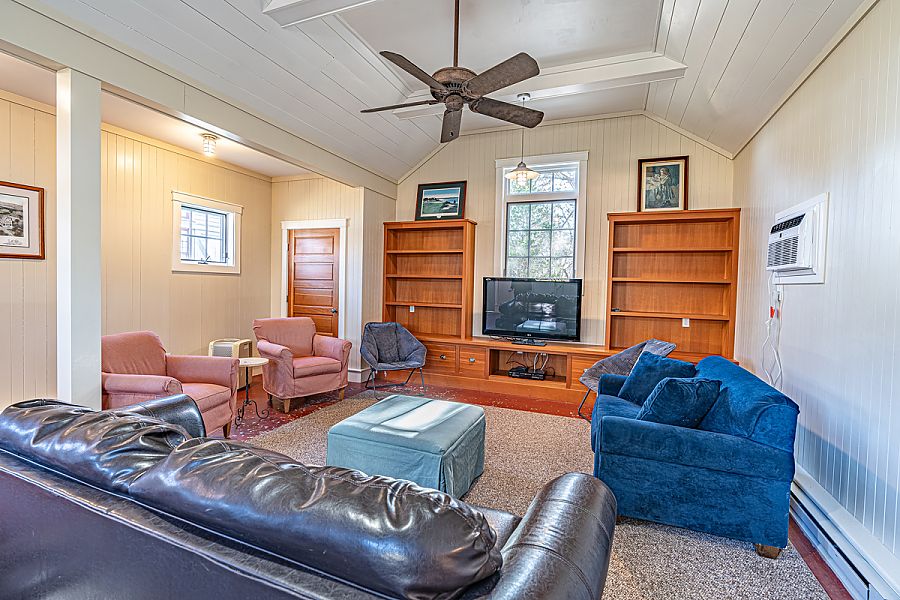 Office: 1st Level, Double, ceiling fan,Detached Guest Sleep Space: 1st Level of Carriage House, double sleep Sofa, sitting area, tv, ceiling fan, A/C, half bath, enclosed outside shower area.