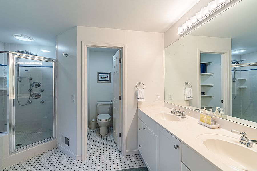 Two primary suites on the 2nd level, each features a private bath —one with a king bed and TV, the other with a queen bed. A third bedroom on this level includes two twin beds, private bath, and TV.